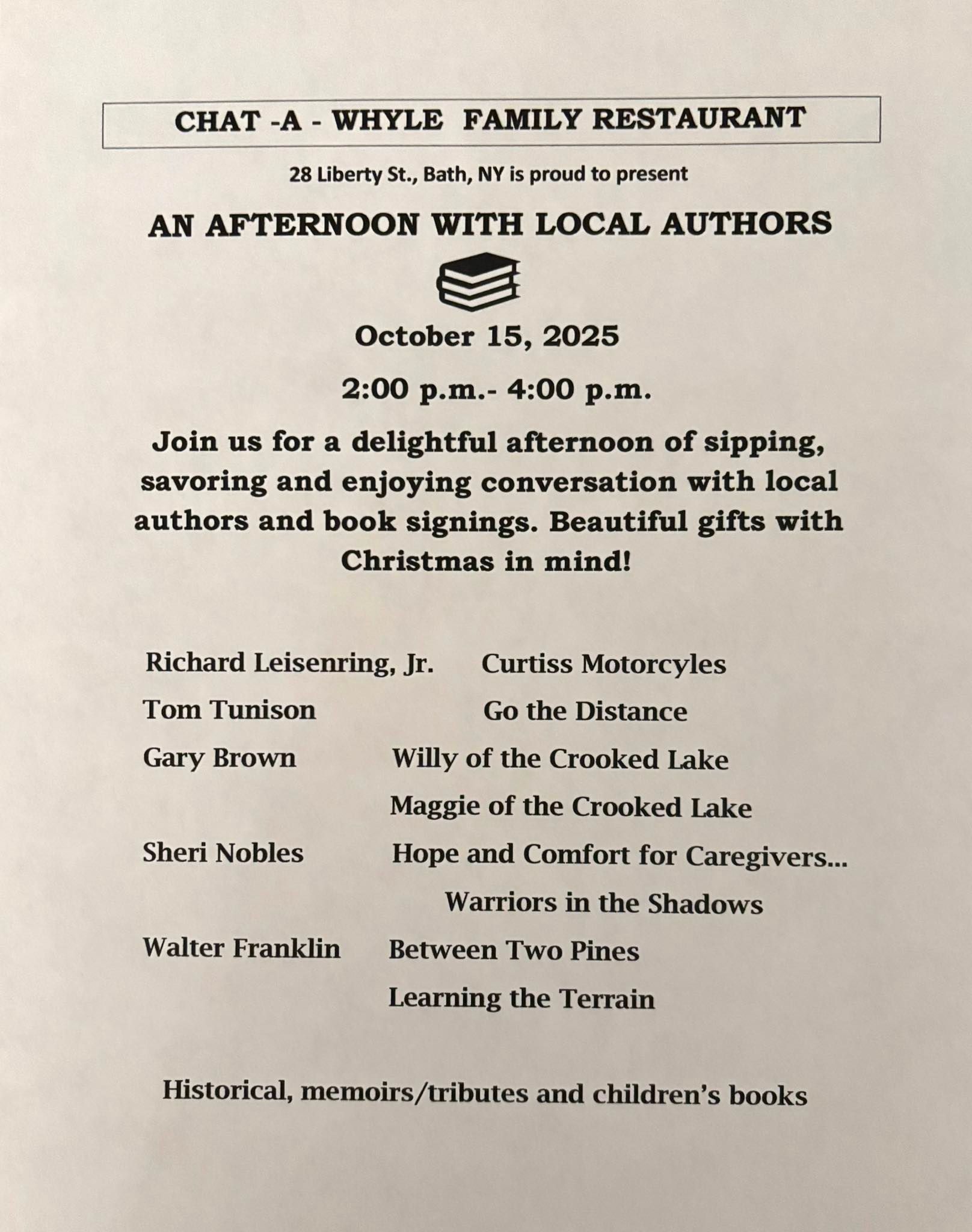 One such gathering, An Afternoon with Local Authors at the Chat-A-Whyle, will take place in Bath on October 15th from 2–4 PM. The event promises an afternoon of sipping, savoring, and meaningful conversation with Sheri and fellow local authors. Sheri will be back in Bath for a few weeks, making this a wonderful opportunity to stop in, say hello, and catch up with her. She is deeply grateful to the Chat-A-Whyle for hosting and to the participating authors for joining in. It’s a true celebration of stories, community, and connection—things Sheri holds especially close to her heart.
