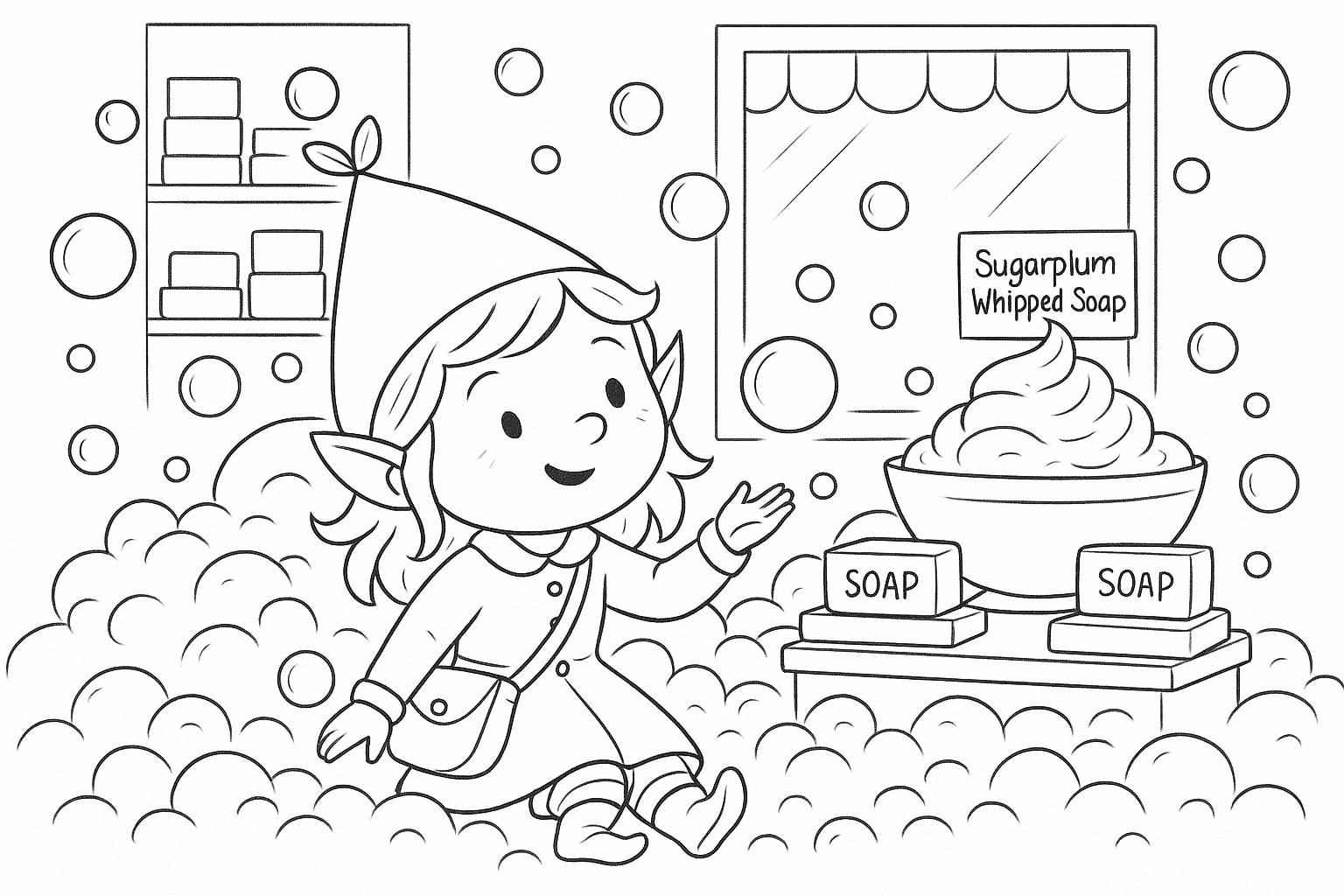 The free-floating bubbles gently drifted to the floor, popping in soft little piff! sounds, leaving the shop smelling like sugarplum wishes.