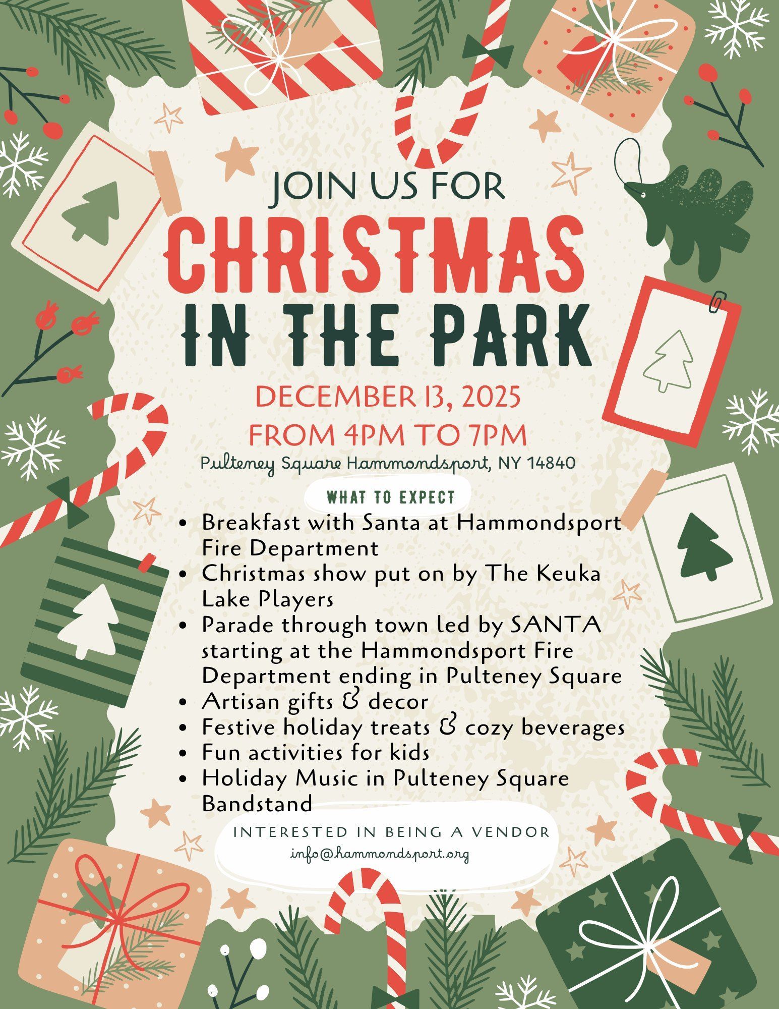 Christmas in the Park isn’t just an event; it’s a chapter in our shared community story — one handwritten each year with joy, togetherness, and that unmistakable small-town magic. From Santa’s parade to the glowing tree, from wagon rides to carols that warm the soul, Hammondsport shines brightest when we gather like this — neighbors, families, visitors, and friends, all sharing the same moment under the same winter sky.