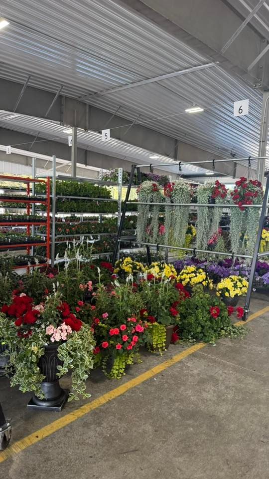 That’s when wagon after wagon rolls into the parking lot carrying rows of flowers in every color imaginable — marigolds, petunias, geraniums, hanging baskets, and little starter plants just waiting for someone to give them a home.