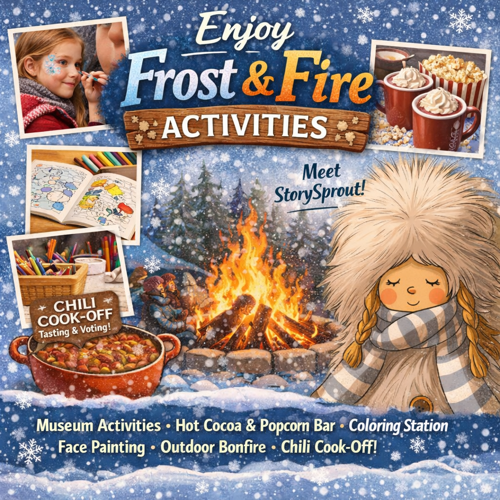 Warm up and wander through a full afternoon of family-friendly fun at Frost & Fire! Enjoy museum-led activities, a complimentary hot cocoa bar and popcorn bar, a cozy coloring station, and face painting for kids. Enjoy the sound of Dave Peterson Music, because no event is complete without music. Say hello to StorySprout, gather around the outdoor bonfire, and don’t forget to take part as a chili cook-off taster—and voter—helping crown the crowd favorite. It’s wintertime joy, served warm.