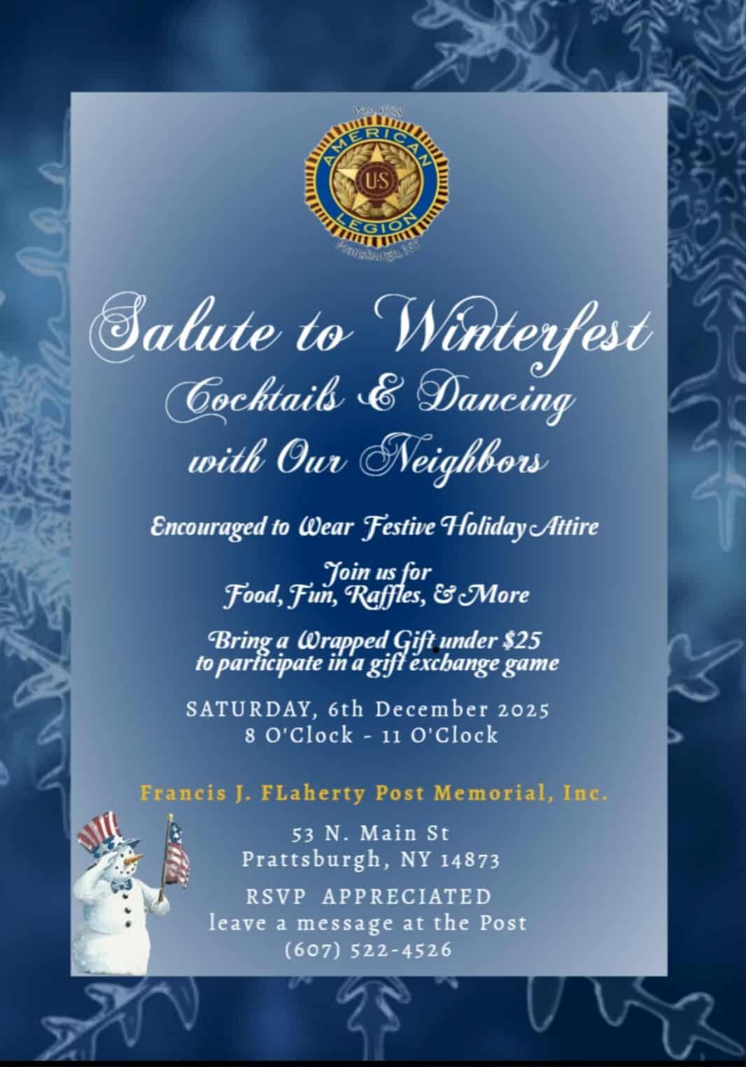 Come to Prattsburgh’s WInter Festival on Saturday, December 6th
