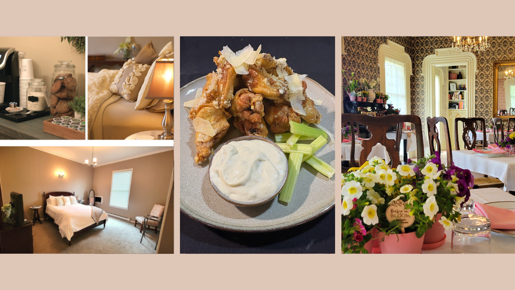 The Inn also features a larger Victorian-style dining room, where special dinners, events, and celebrations bring the community together throughout the year.